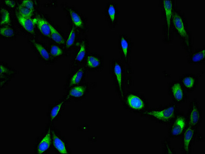Immunofluorescent analysis of Hela cells using CSB-PA026253LA01HU at dilution of 1:100 and Alexa Fluor 488-congugated AffiniPure Goat Anti-Rabbit IgG(H+L)