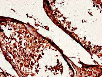 Immunohistochemistry of paraffin-embedded human testis tissue using CSB-PA026253LA01HU at dilution of 1:100