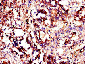 Immunohistochemistry of paraffin-embedded human gastric cancer using CSB-PA026253LA01HU at dilution of 1:100