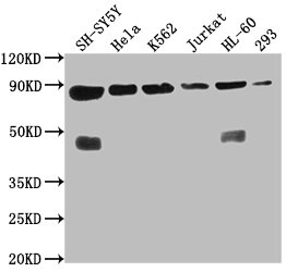 Positive WB detected in: SH-SY5Y whole cell lysate, Hela whole cell lysate, K562 whole cell lysate, Jurkat whole cell lysate, HL60 whole cell lysate, 293 whole cell lysate