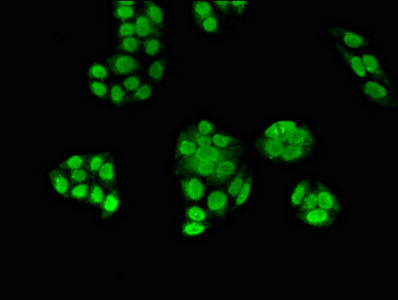 Immunofluorescent analysis of PC-3 cells using CSB-PA610840LA01HU at dilution of 1:100 and Alexa Fluor 488-congugated AffiniPure Goat Anti-Rabbit IgG(H+L)