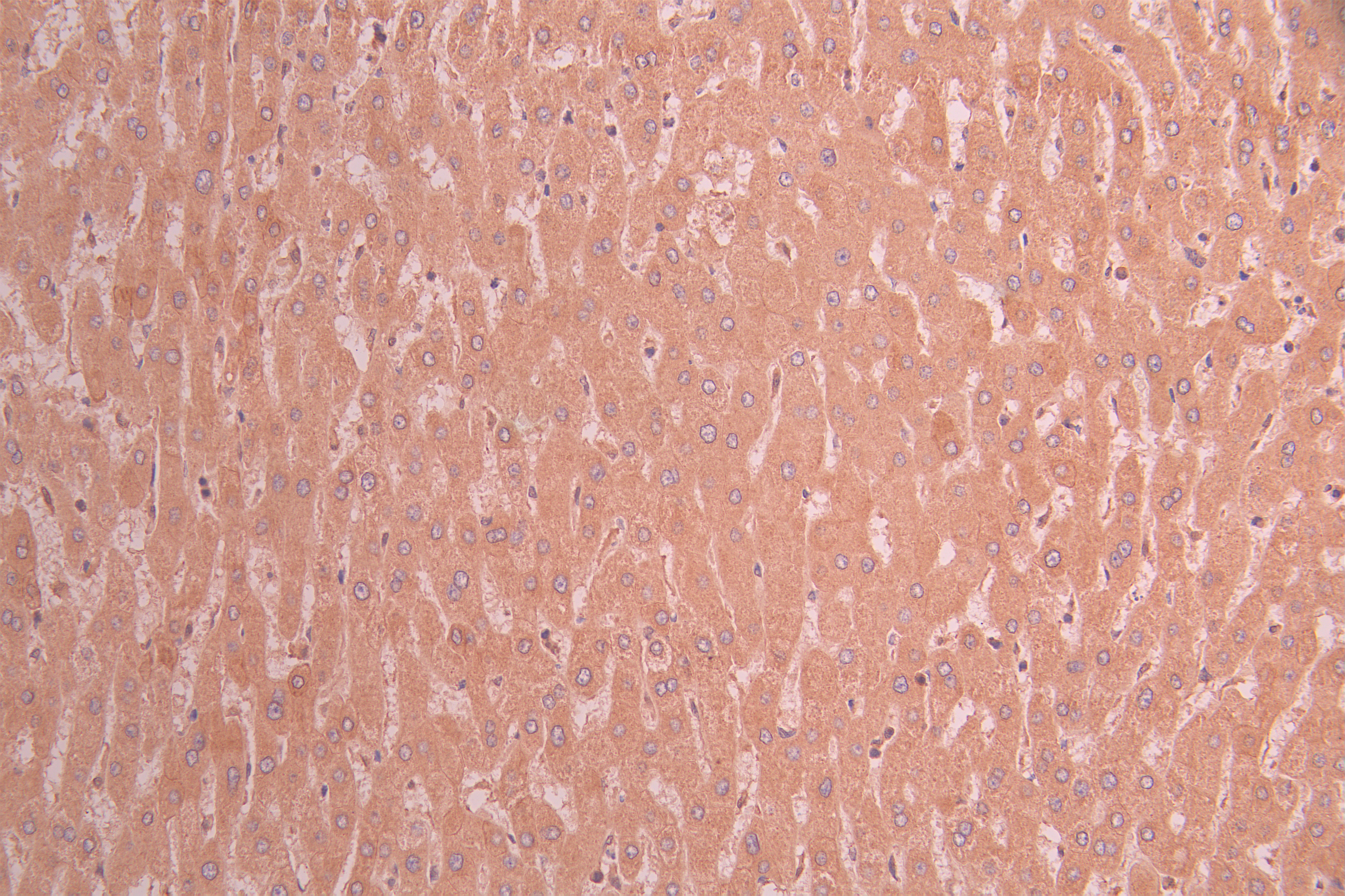 IHC image of CSB-RA143705A0HU diluted at 1:100 and staining in paraffin-embedded human liver cancer performed on a Leica BondTM system. After dewaxing and hydration, antigen retrieval was mediated by high pressure in a citrate buffer (pH 6.0). Section was blocked with 10% normal goat serum 30min at RT. Then primary antibody (1% BSA) was incubated at 4°C overnight. The primary is detected by a Goat anti-rabbit polymer IgG labeled by HRP and visualized using 0.05% DAB.