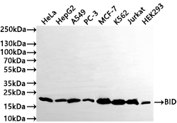 別名:Apoptic death agonist antibody; Apoptotic death agonist BID antibody; BH3 interacting domain death agonist antibody; BH3 interacting domain death agonist p11 antibody; BH3 interacting domain death agonist p13 antibody; BH3 interacting domain death agonist p15 antibody; BH3-interacting domain death agonist p11 antibody; BID antibody; BID isoform ES(1b) antibody; BID isoform L(2) antibody; BID isoform Si6 antibody; BID_HUMAN antibody; Desmocollin type 4 antibody; FP497 antibody; Human BID coding sequence antibody; MGC15319 antibody; MGC42355 antibody; p11 BID antibody; p13 BID antibody; p15 BID antibody; p22 BID antibody