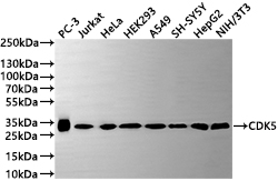 Positive WB detected in: PC-3 whole cell lysate(30μg), Jurkat whole cell lysate(30μg), HeLa whole cell lysate(30μg), HEK293 whole cell lysate(30μg), A549 whole cell lysate(30μg), SH-SY5Y whole cell lysate(30μg), HepG2 whole cell lysate(30μg), NIH/3T3 whole cell lysate(30μg)
