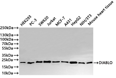 別名:0610041G12Rik antibody; DBLOH_HUMAN antibody; DBOH antibody; DFNA64 antibody; diablo antibody; Diablo homolog (Drosophila) antibody; Diablo homolog antibody; Diablo homolog mitochondrial antibody; Diablo IAP binding mitochondrial protein antibody; Diablo like protein antibody; DIABLO S antibody; Direct IAP binding protein with low pI antibody; Direct IAP-binding protein with low pI antibody; FLJ10537 antibody; FLJ25049 antibody; mitochondrial antibody; Mitochondrial Smac protein antibody; Second mitochondria derived activator of caspase antibody; Second mitochondria-derived activator of caspase antibody; second mitochondrial activator of caspases antibody; SMAC 3 antibody; Smac antibody; Smac protein antibody; SMAC3 antibody
