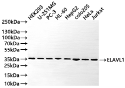 All lanes: ELAVL1 antibody at 1:1000