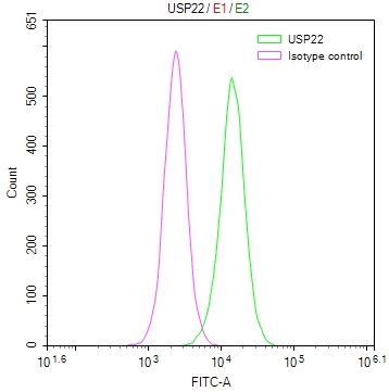 Immunofluorescence?staining?of?Hela?cell?with?CSB-RA009514MA2HU?at?1:30,?counter-stained?with?DAPI.?The?cells?were?fixed?in?4%?formaldehyde?and?blocked?in?10%?normal?Goat?Serum.?The?cells?were?then?incubated?with?the?antibody?overnight?at?4C.?The?secondary?antibody?was?FITC-conjugated?AffiniPure?Goat?Anti-Human?IgG(H+L).