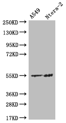 Positive WB detected in: A549 whole cell lysate, Ntera-2 whole cell lysate