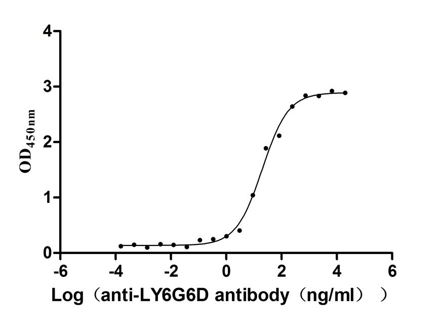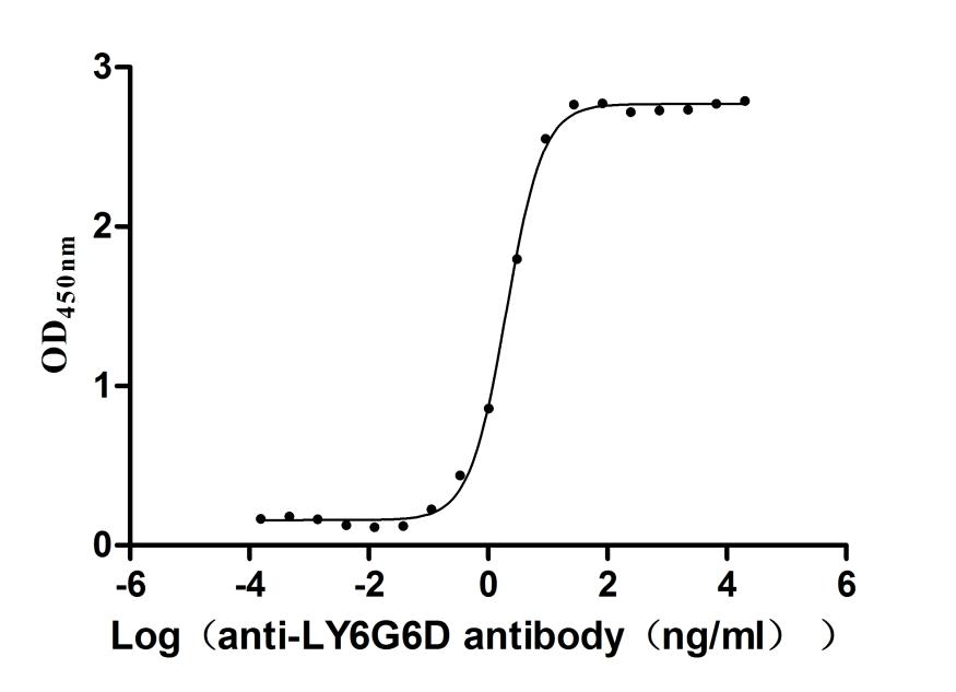 Activity: Measured by its binding ability in a functional ELISA. Immobilized Human LY6G6D (CSB-YP013246HU) at 2 μg/mL can bind Anti-LY6G6D recombinant antibody. The EC50 is 1.840-2.204 ng/mL. -