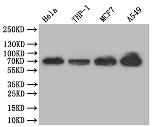 Positive WB detected in: Hela whole cell lysate, THP-1 whole cell lysate, MCF7 whole cell lysate, A549 whole cell lysate