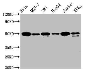 Positive WB detected in: Hela whole cell lysate, MCF-7 whole cell lysate, 293 whole cell lysate, HepG2 whole cell lysate, Jurkat whole cell lysate, K562 whole cell lysate