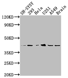 Positive WB detected in: SH-SY5Y whole cell lysate, 293 whole cell lysate, Hela whole cell lysate, U251 whole cell lysate, A549 whole cell lysate, Mouse brain tissue