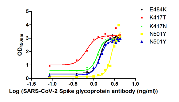 The Binding Activity of S protein with S Recombinant Antibody. Activity: Measured by its binding ability in a functional ELISA. Immobilized S at 2 μg/ml can bind S Recombinant Antibody, the EC50 of S Recombinant Antibody.