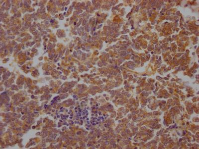 IHC image of CSB-RA229700A0HU diluted at 1:100 and staining in paraffin-embedded human lung cancer performed on a Leica BondTM system. After dewaxing and hydration, antigen retrieval was mediated by high pressure in a citrate buffer (pH 6.0). Section was blocked with 10% normal goat serum 30min at RT. Then primary antibody (1% BSA) was incubated at 4℃ overnight. The primary is detected by a Goat anti-rabbit IgG polymer labeled by HRP and visualized using 0.05% DAB.
