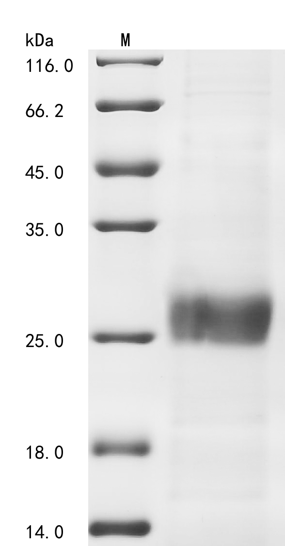 復(fù)溶:We recommend that this vial be briefly centrifuged prior to opening to bring the contents to the bottom. Please reconstitute protein in deionized sterile water to a concentration of 0.1-1.0 mg/mL.We recommend to add 5-50% of glycerol (final concentration) and aliquot for long-term storage at -20℃/-80℃. Our default final concentration of glycerol is 50%. Customers could use it as reference.