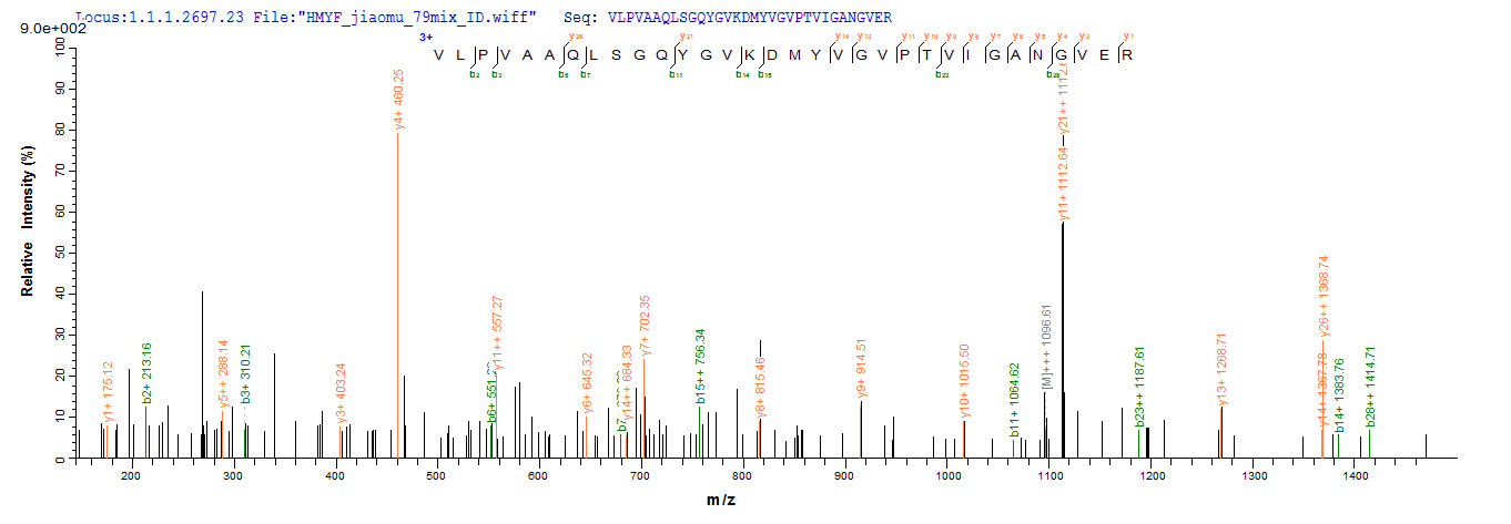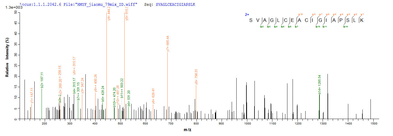 Based on the SEQUEST from database of E.coli host and target protein, the LC-MS/MS Analysis result of CSB-EP013623BWR could indicate that this peptide derived from E.coli-expressed Brucella abortus (strain S19) mdh.