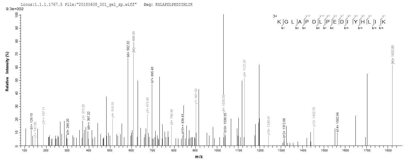 Based on the SEQUEST from database of E.coli host and target protein, the LC-MS/MS Analysis result of CSB-EP816848DTL could indicate that this peptide derived from E.coli-expressed Ciona intestinalis (Transparent sea squirt) (Ascidia intestinalis) RPS13.