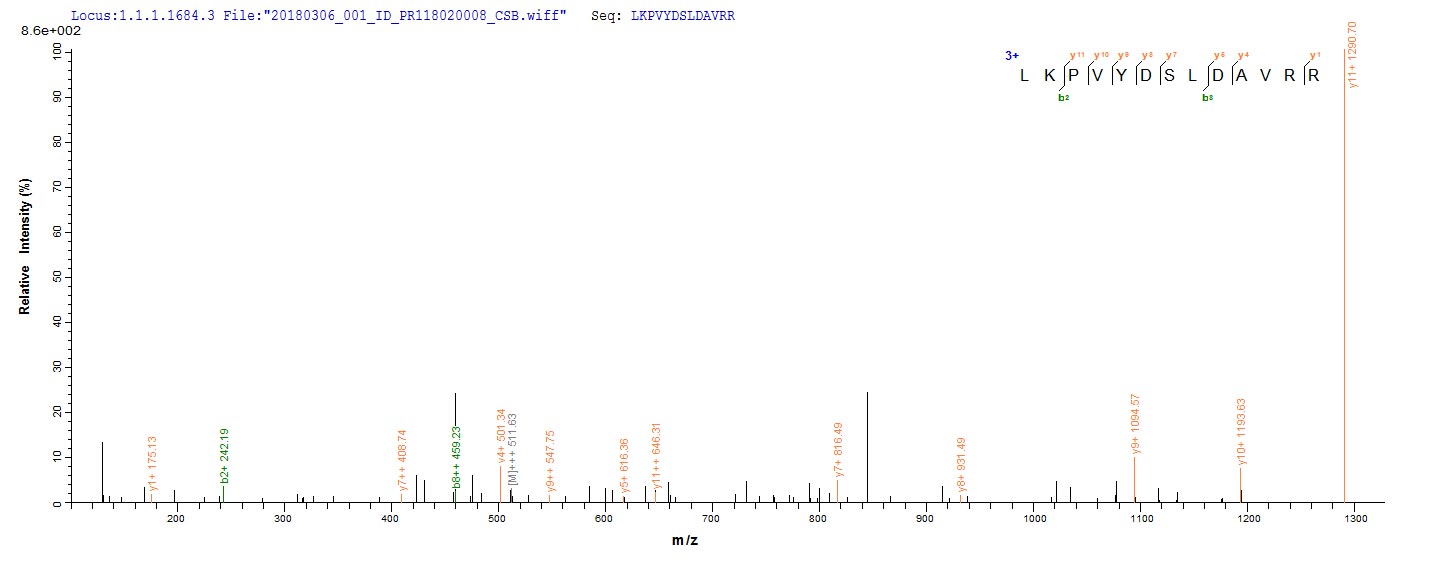 Based on the SEQUEST from database of E.coli host and target protein, the LC-MS/MS Analysis result of CSB-EP360435EDZ could indicate that this peptide derived from E.coli-expressed Enterobacteria phage T4 (Bacteriophage T4) E.