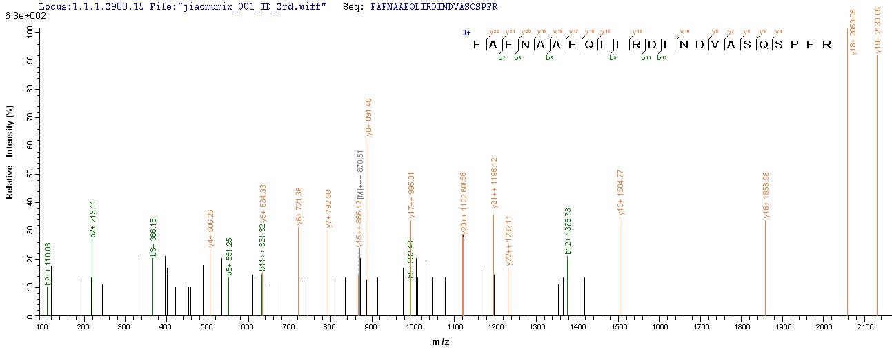 Based on the SEQUEST from database of E.coli host and target protein, the LC-MS/MS Analysis result of CSB-EP356444ENV could indicate that this peptide derived from E.coli-expressed Escherichia coli (strain K12) alkB.