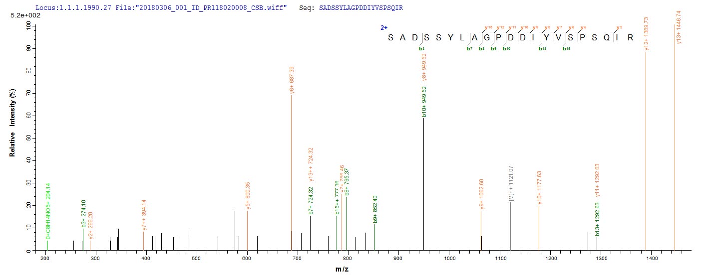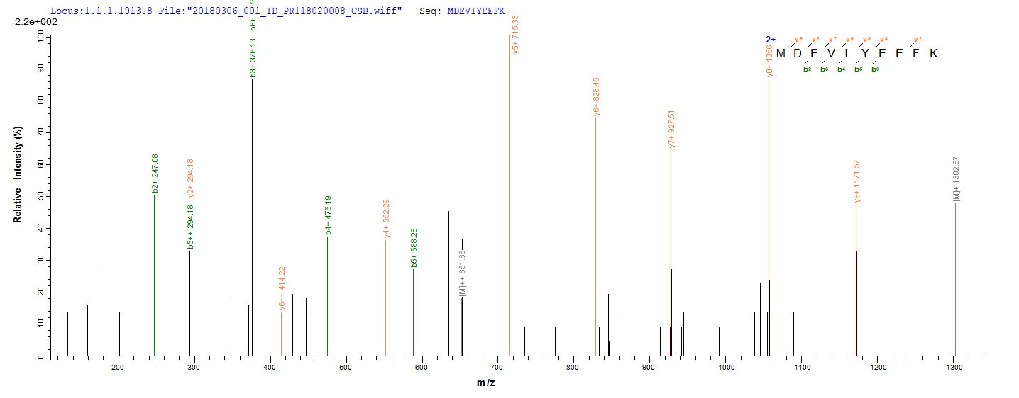 Based on the SEQUEST from database of E.coli host and target protein, the LC-MS/MS Analysis result of CSB-RP166274Ba could indicate that this peptide derived from E.coli-expressed Escherichia coli (strain K12) rho.