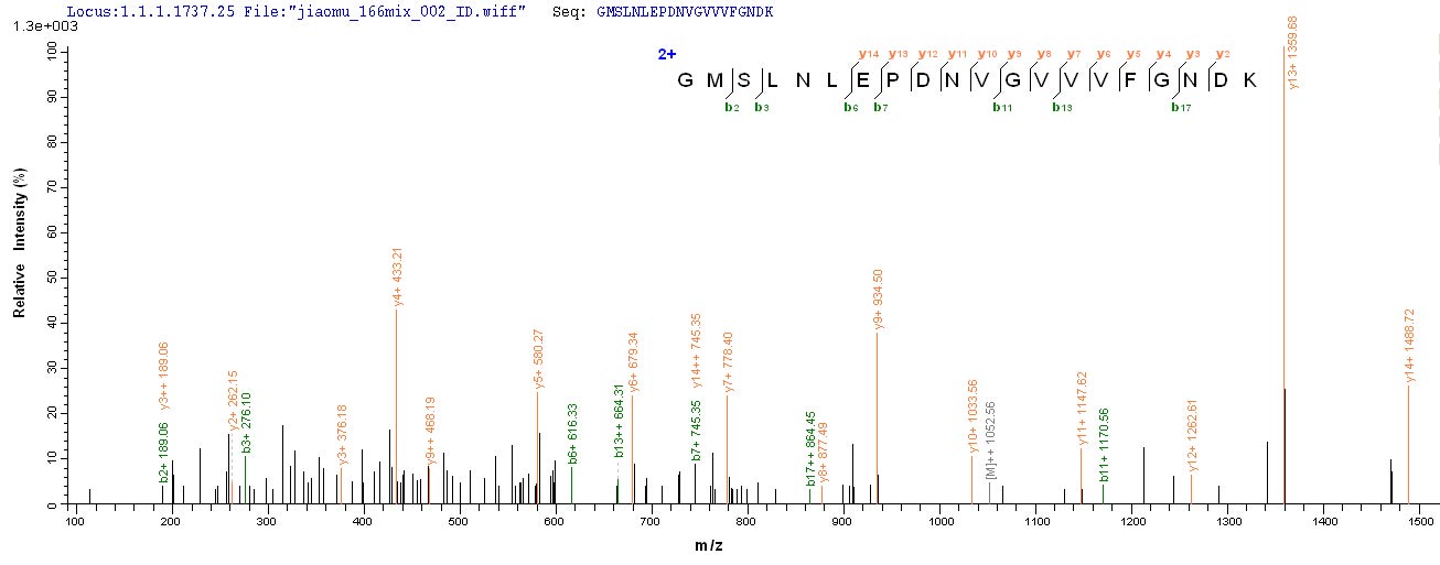 Based on the SEQUEST from database of E.coli host and target protein, the LC-MS/MS Analysis result of CSB-EP002344HUa2 could indicate that this peptide derived from E.coli-expressed Homo sapiens (Human) ATP5A1.