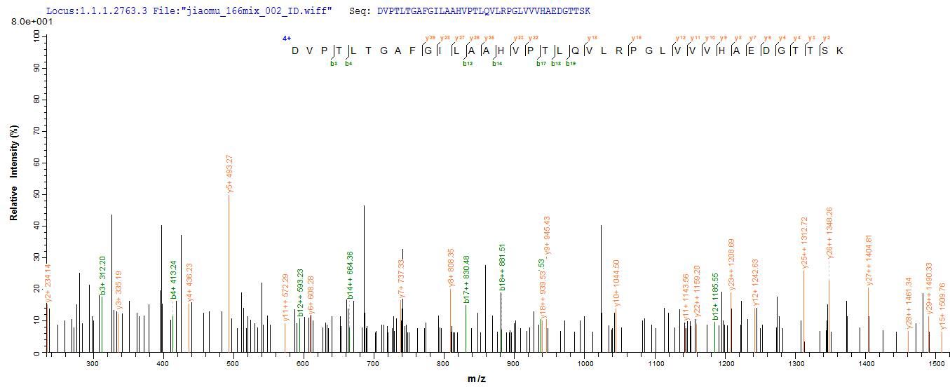 Based on the SEQUEST from database of E.coli host and target protein, the LC-MS/MS Analysis result of CSB-EP002355HU could indicate that this peptide derived from E.coli-expressed Homo sapiens (Human) ATP5D.