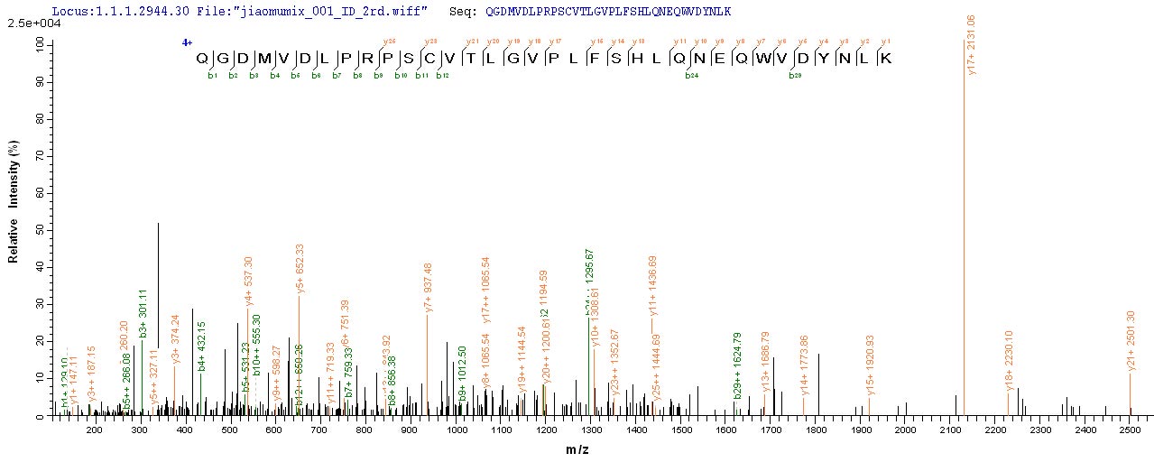 Based on the SEQUEST from database of E.coli host and target protein, the LC-MS/MS Analysis result of CSB-EP005386HU could indicate that this peptide derived from E.coli-expressed Homo sapiens (Human) CHRNA1.