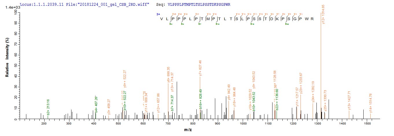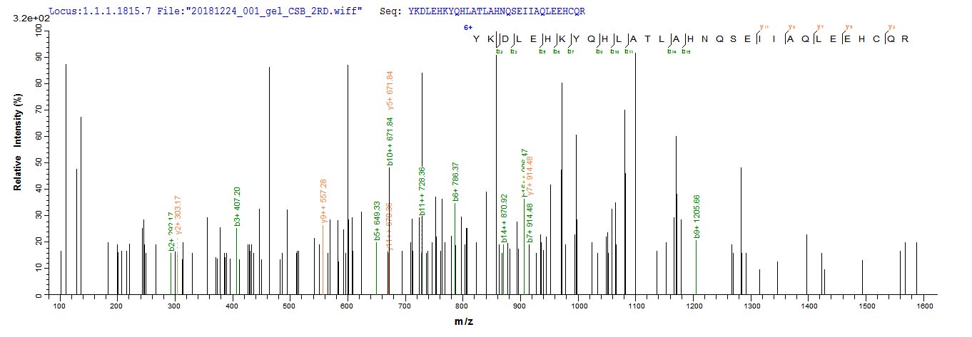 Based on the SEQUEST from database of E.coli host and target protein, the LC-MS/MS Analysis result of CSB-EP891539HU could indicate that this peptide derived from E.coli-expressed Homo sapiens (Human) ANGPTL2.