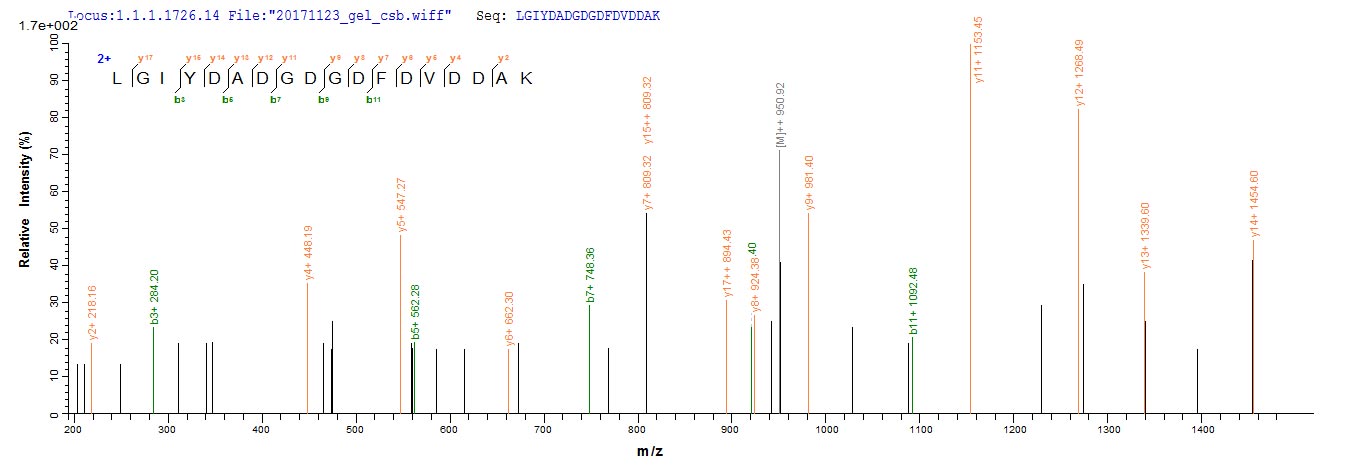 Based on the SEQUEST from database of E.coli host and target protein, the LC-MS/MS Analysis result of CSB-EP002226HU could indicate that this peptide derived from E.coli-expressed Homo sapiens (Human) ASPH.