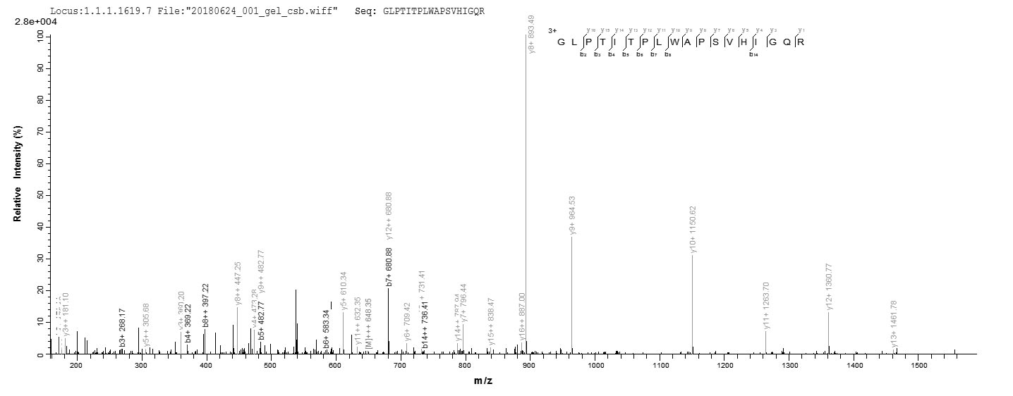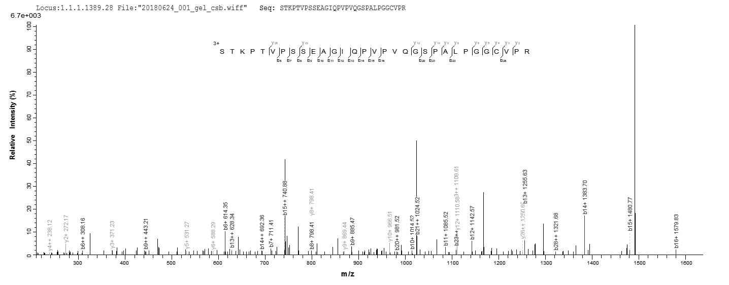 Based on the SEQUEST from database of E.coli host and target protein, the LC-MS/MS Analysis result of CSB-EP760708HU could indicate that this peptide derived from E.coli-expressed Homo sapiens (Human) ASTL.