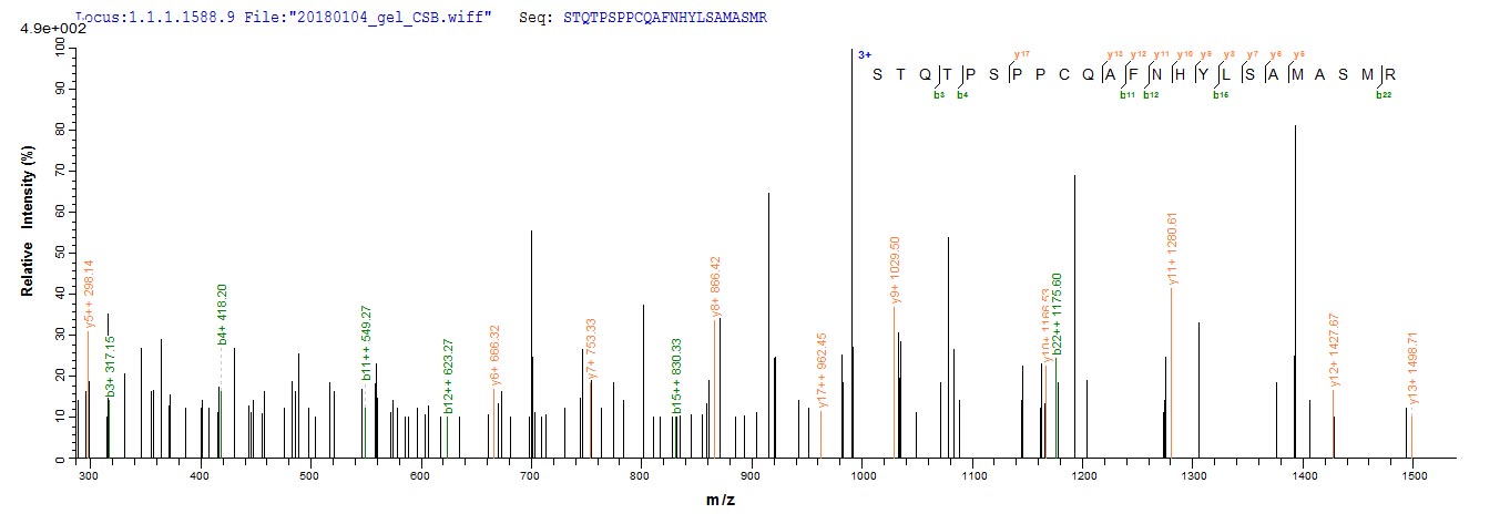 Based on the SEQUEST from database of E.coli host and target protein, the LC-MS/MS Analysis result of CSB-EP002615HU could indicate that this peptide derived from E.coli-expressed Homo sapiens (Human) BCL2L11.