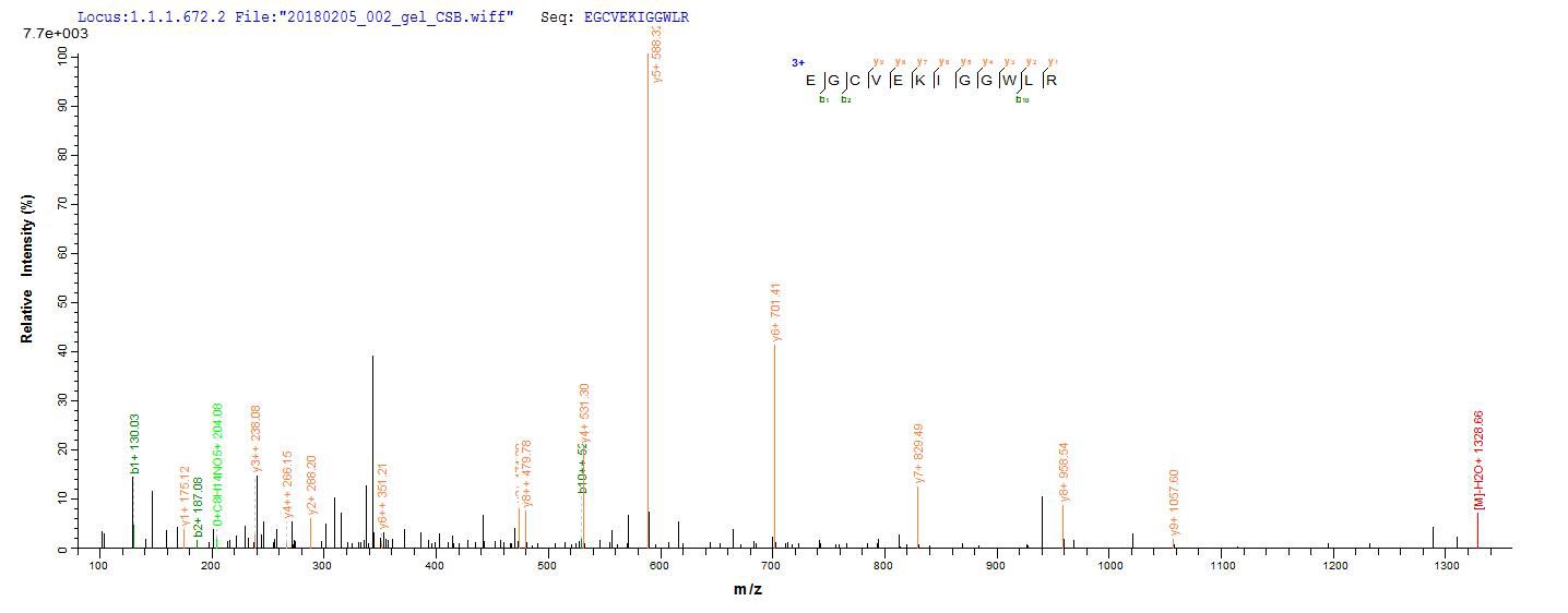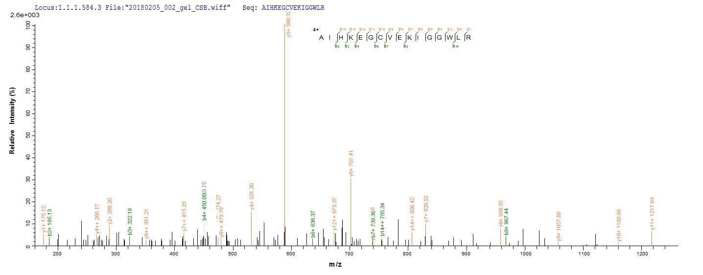 Based on the SEQUEST from database of Yeast host and target protein, the LC-MS/MS Analysis result of CSB-YP004950HU1 could indicate that this peptide derived from Yeast-expressed Homo sapiens (Human) CD63.