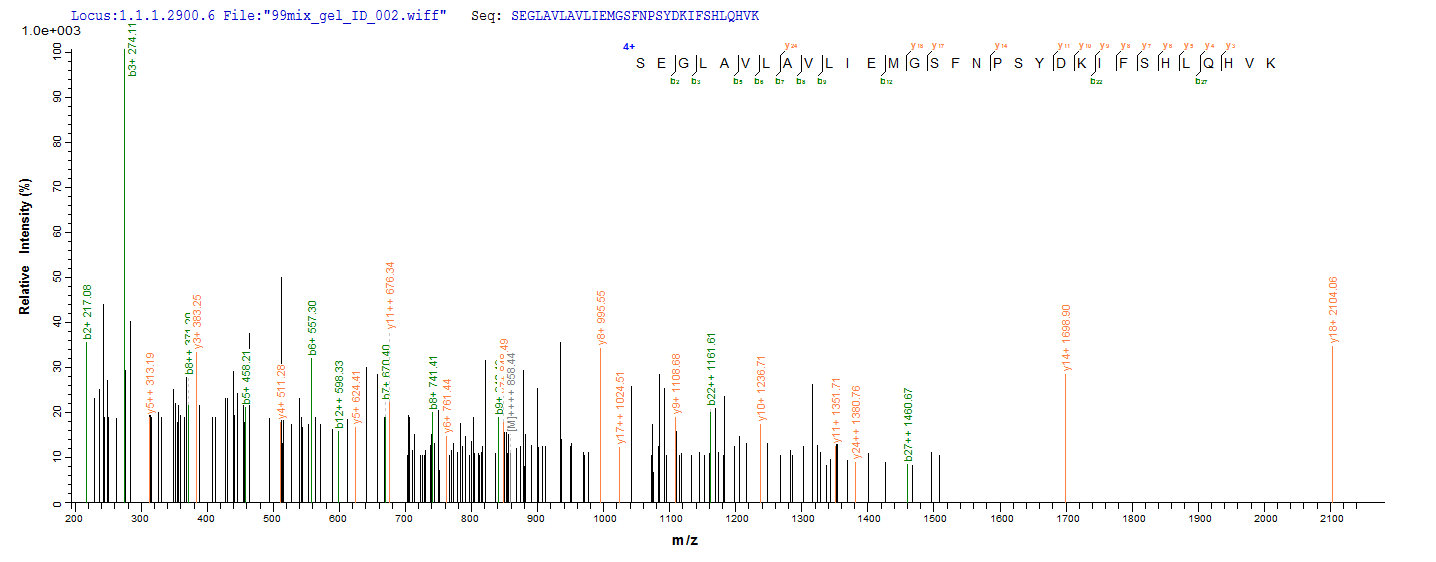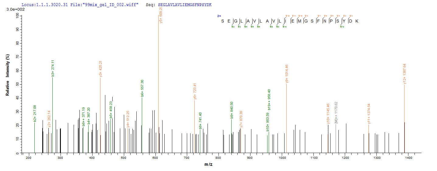 Based on the SEQUEST from database of Yeast host and target protein, the LC-MS/MS Analysis result of CSB-YP004367HU could indicate that this peptide derived from Yeast-expressed Homo sapiens (Human) CA12.