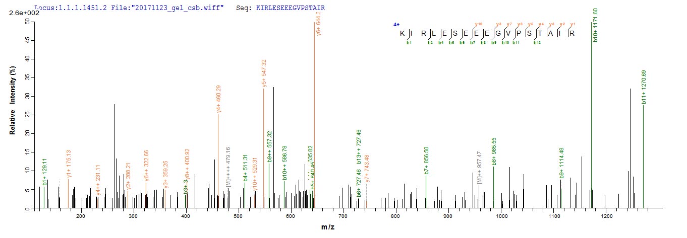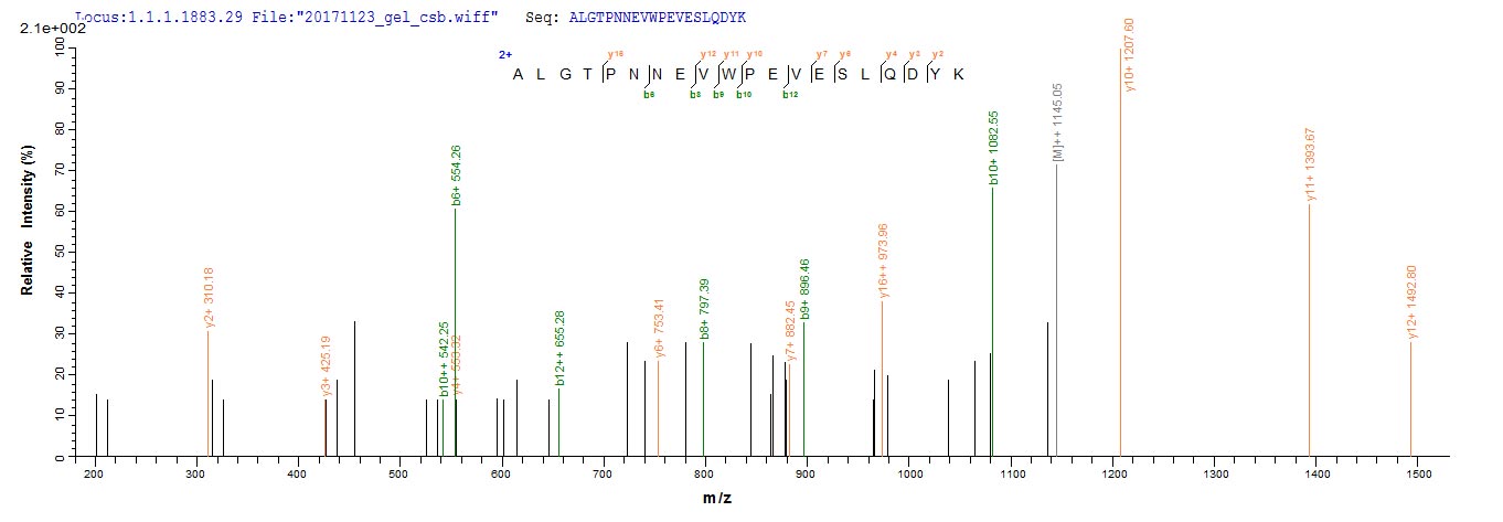 Based on the SEQUEST from database of E.coli host and target protein, the LC-MS/MS Analysis result of CSB-EP361848HU could indicate that this peptide derived from E.coli-expressed Homo sapiens (Human) CDK1.
