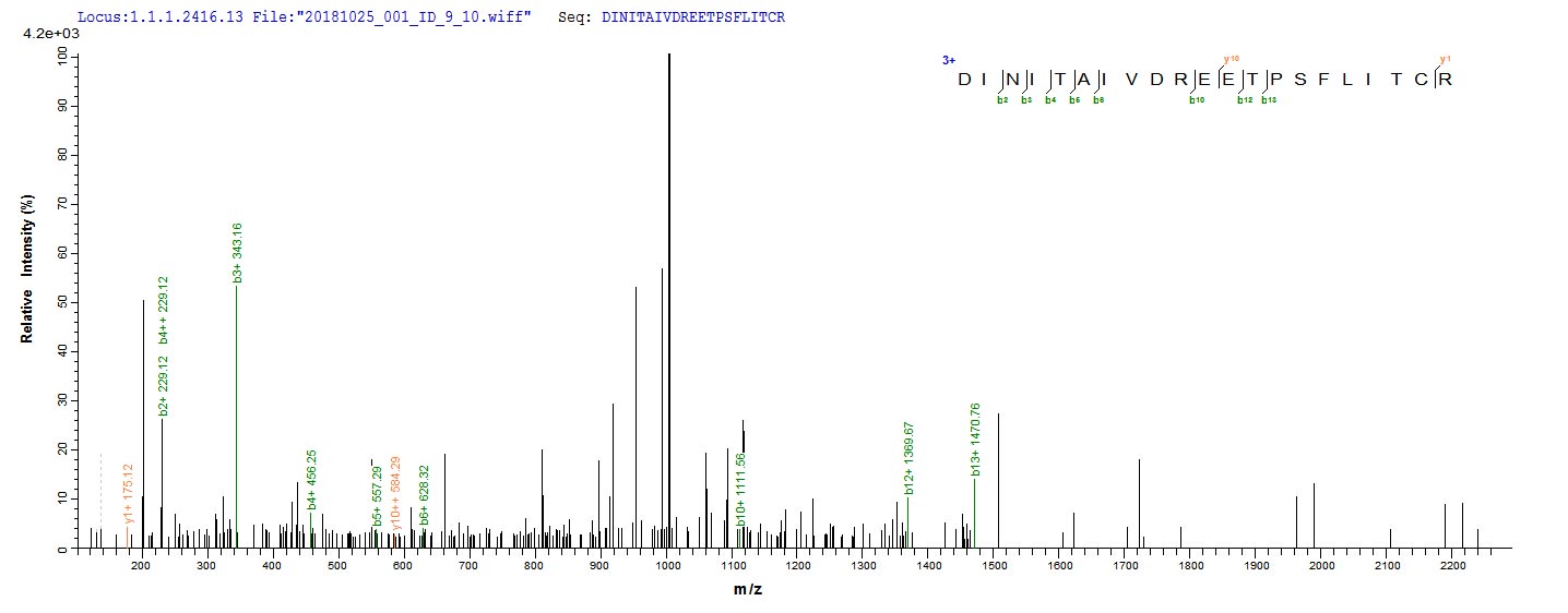 Based on the SEQUEST from database of E.coli host and target protein, the LC-MS/MS Analysis result of CSB-EP007205HUa0 could indicate that this peptide derived from E.coli-expressed Homo sapiens (Human) DSG3.