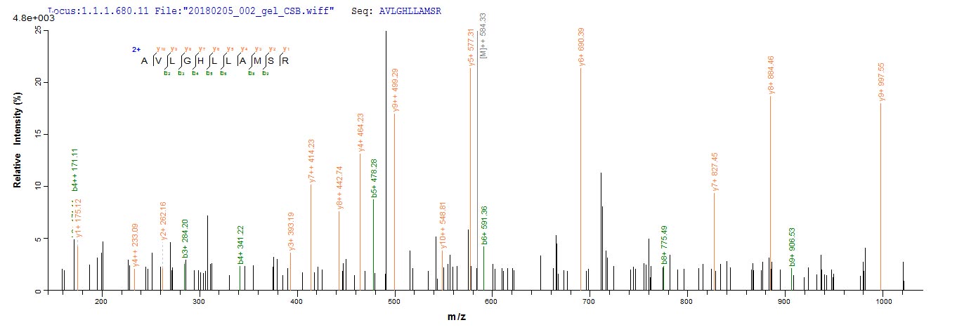 Based on the SEQUEST from database of E.coli host and target protein, the LC-MS/MS Analysis result of CSB-EP008415HU could indicate that this peptide derived from E.coli-expressed Homo sapiens (Human) FANCC.