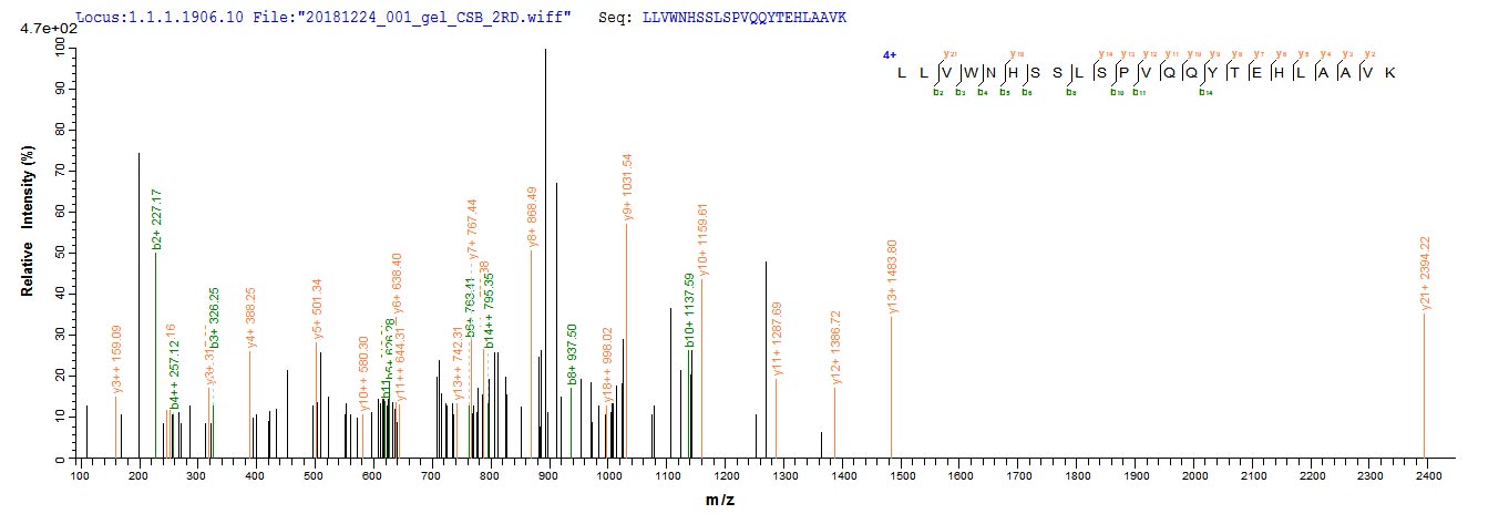 Based on the SEQUEST from database of E.coli host and target protein, the LC-MS/MS Analysis result of CSB-EP892473HU could indicate that this peptide derived from E.coli-expressed Homo sapiens (Human) FZR1.