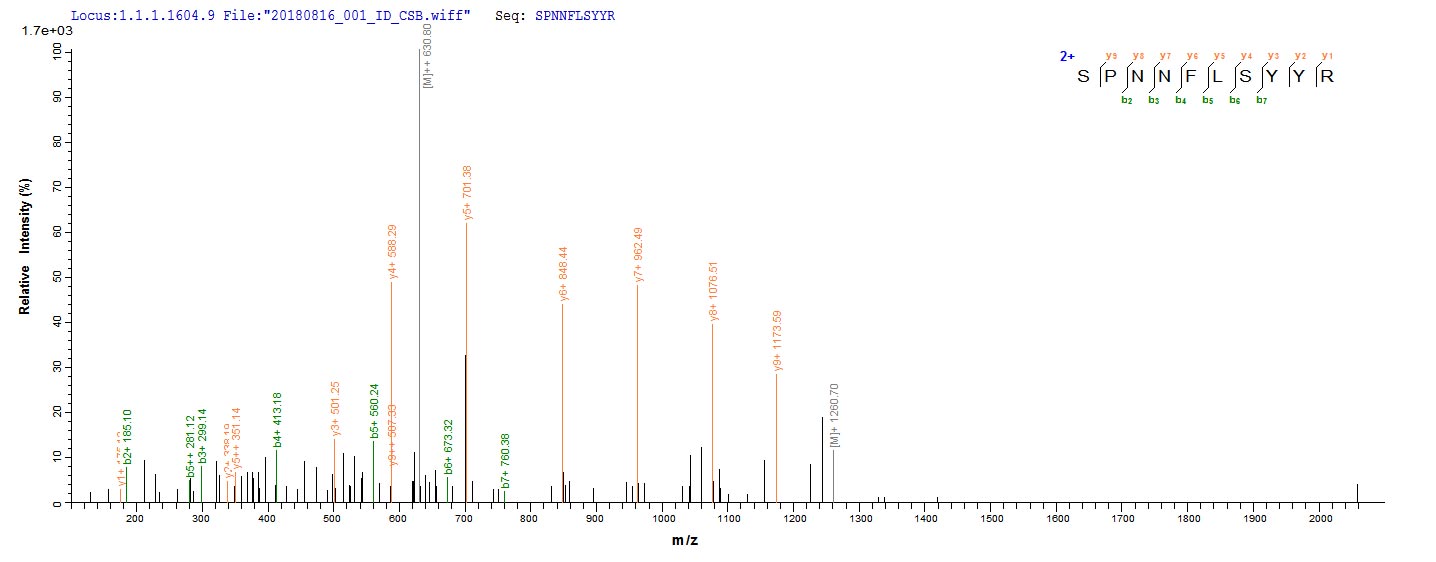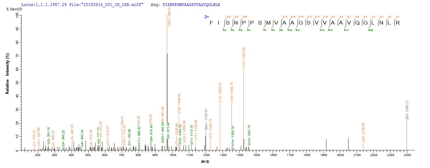 Based on the SEQUEST from database of E.coli host and target protein, the LC-MS/MS Analysis result of CSB-EP004811HU could indicate that this peptide derived from E.coli-expressed Homo sapiens (Human) CCND1.