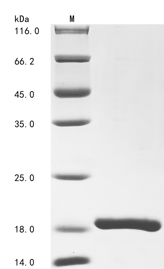復(fù)溶:We recommend that this vial be briefly centrifuged prior to opening to bring the contents to the bottom. Please reconstitute protein in deionized sterile water to a concentration of 0.1-1.0 mg/mL.We recommend to add 5-50% of glycerol (final concentration) and aliquot for long-term storage at -20℃/-80℃. Our default final concentration of glycerol is 50%. Customers could use it as reference.