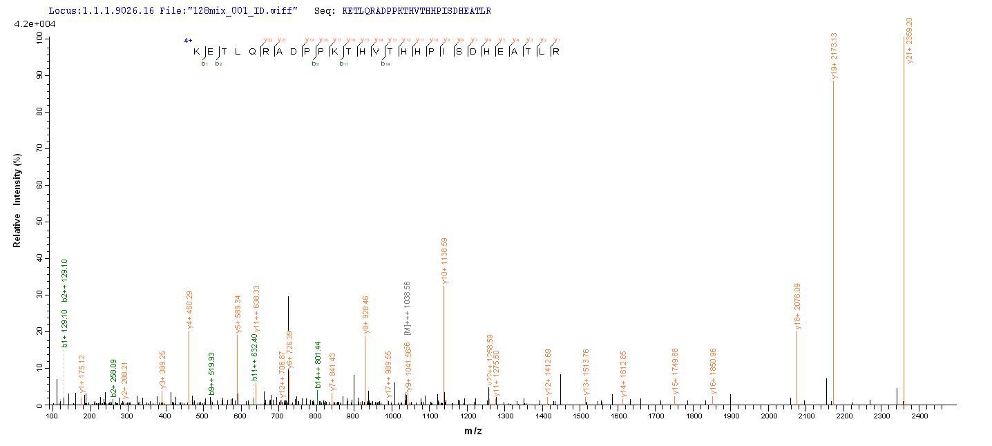 Based on the SEQUEST from database of E.coli host and target protein, the LC-MS/MS Analysis result of CSB-RP150894h could indicate that this peptide derived from E.coli-expressed Homo sapiens (Human) HLA-B.