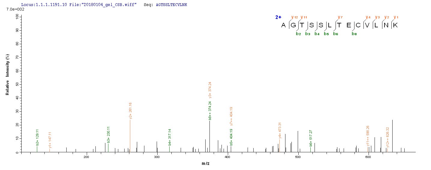 Based on the SEQUEST from database of E.coli host and target protein, the LC-MS/MS Analysis result of CSB-EP614402HU could indicate that this peptide derived from E.coli-expressed Homo sapiens (Human) IL15RA.