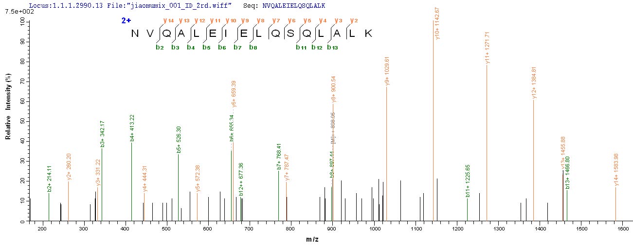 Based on the SEQUEST from database of E.coli host and target protein, the LC-MS/MS Analysis result of CSB-EP012504HU could indicate that this peptide derived from E.coli-expressed Homo sapiens (Human) KRT10.
