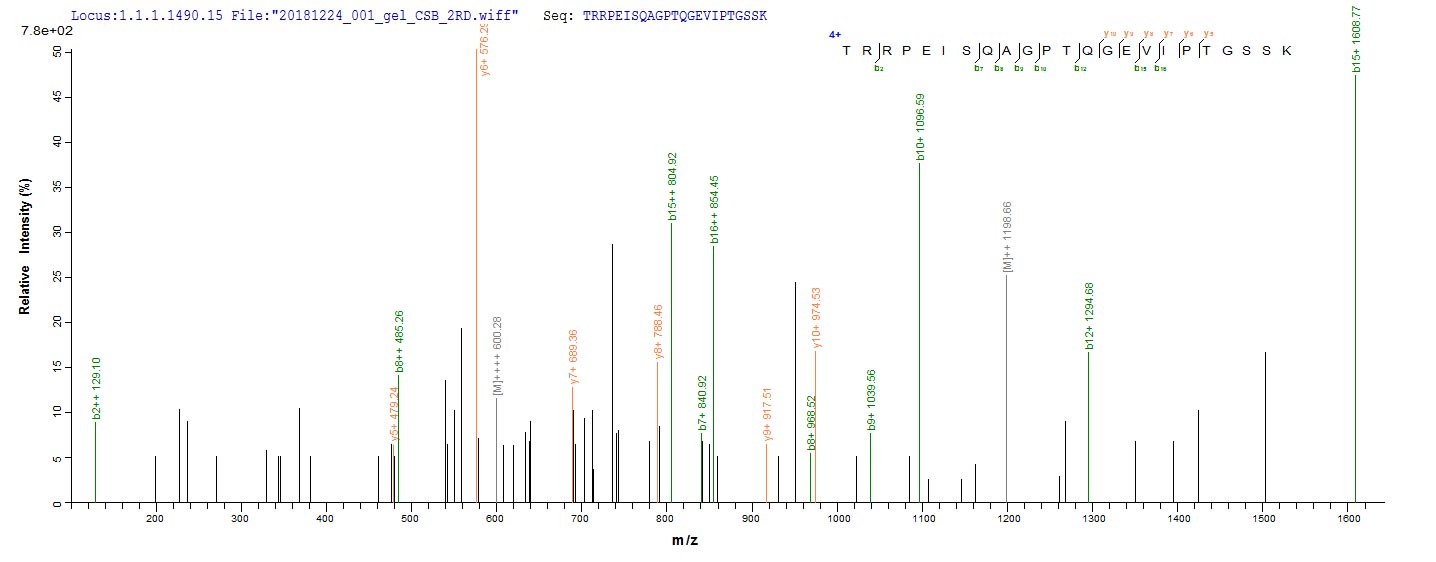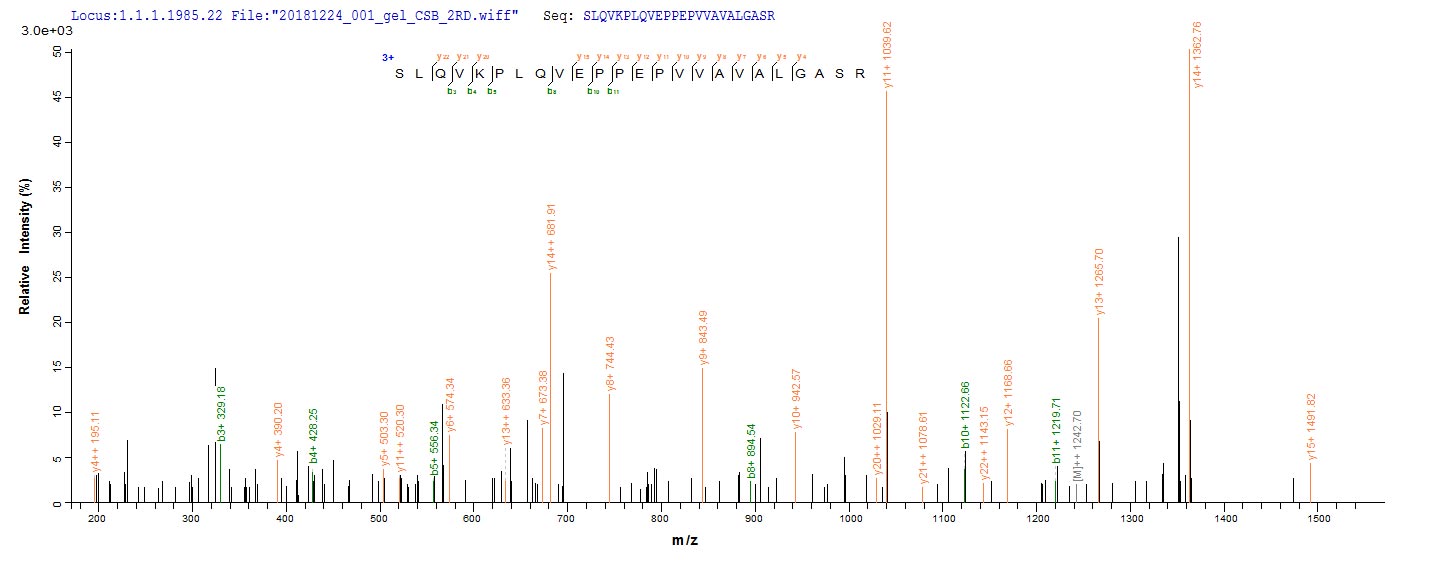 Based on the SEQUEST from database of E.coli host and target protein, the LC-MS/MS Analysis result of CSB-EP618776HU could indicate that this peptide derived from E.coli-expressed Homo sapiens (Human) MADCAM1.