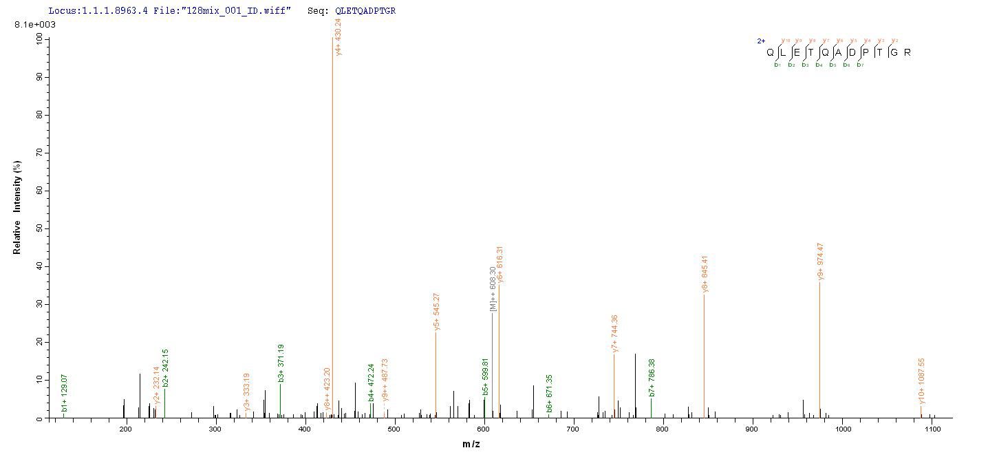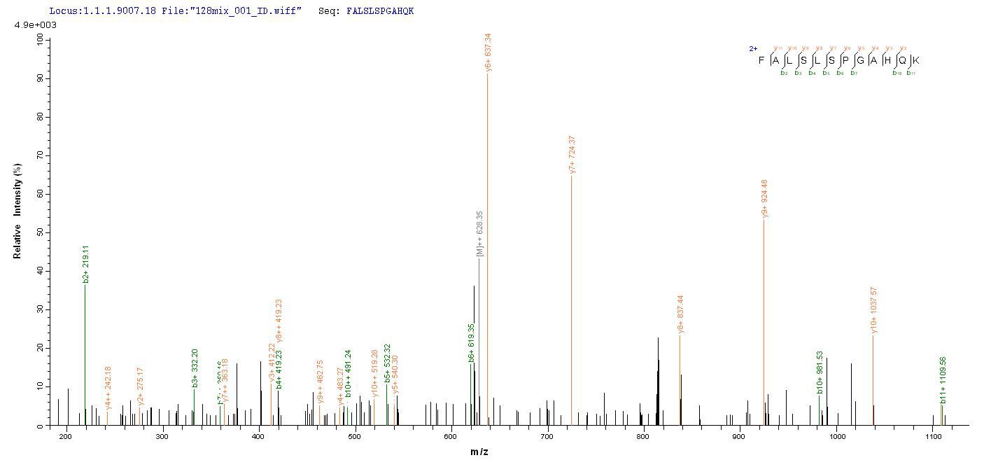 Based on the SEQUEST from database of E.coli host and target protein, the LC-MS/MS Analysis result of CSB-EP859945HU could indicate that this peptide derived from E.coli-expressed Homo sapiens (Human) MYD88.