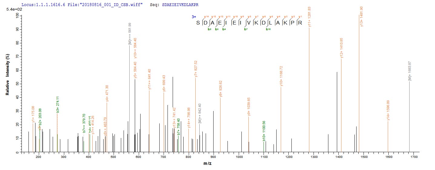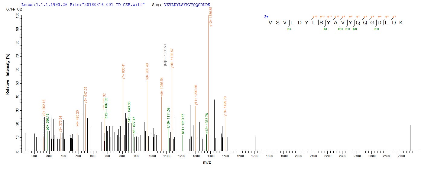 Based on the SEQUEST from database of E.coli host and target protein, the LC-MS/MS Analysis result of CSB-EP017339HU could indicate that this peptide derived from E.coli-expressed Homo sapiens (Human) P4HA1.