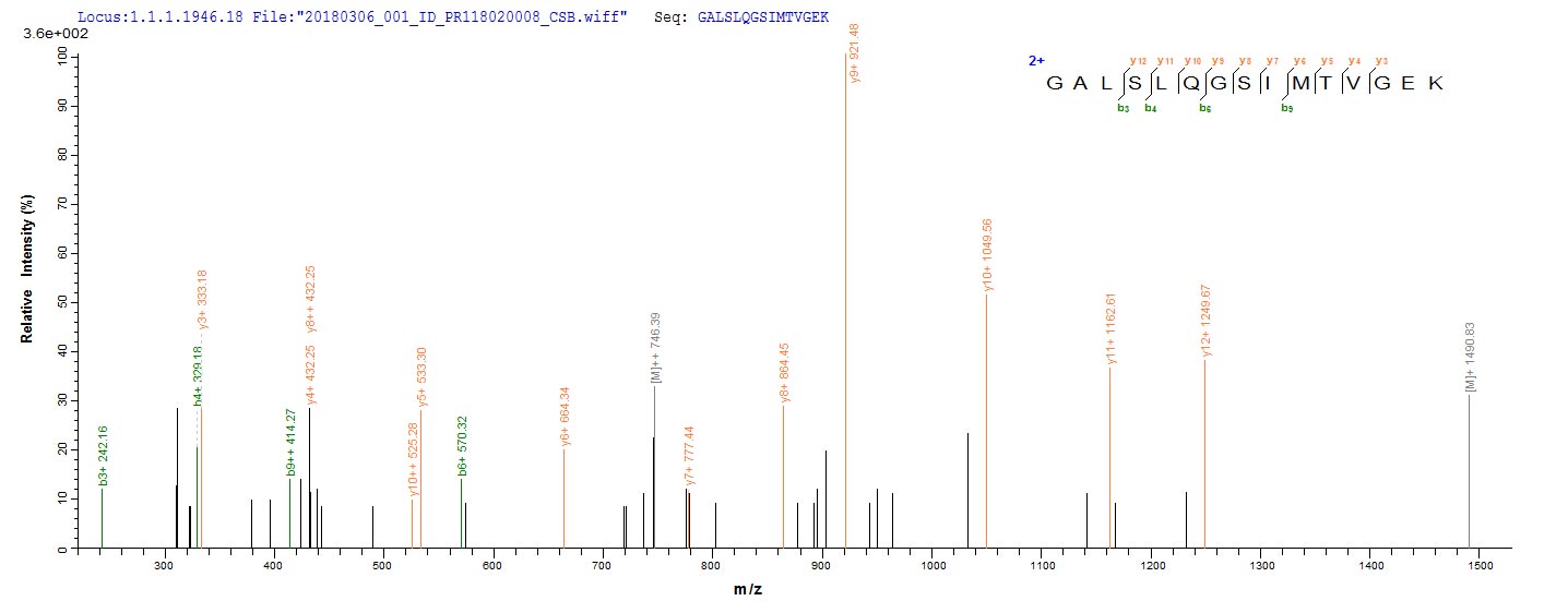Based on the SEQUEST from database of Yeast host and target protein, the LC-MS/MS Analysis result of CSB-YP810281HU could indicate that this peptide derived from Yeast-expressed Homo sapiens (Human) SFTPA1.