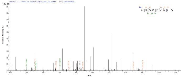 Based on the SEQUEST from database of Yeast host and target protein, the LC-MS/MS Analysis result of CSB-YP623780HU could indicate that this peptide derived from Yeast-expressed Homo sapiens (Human) PLA2R1.
