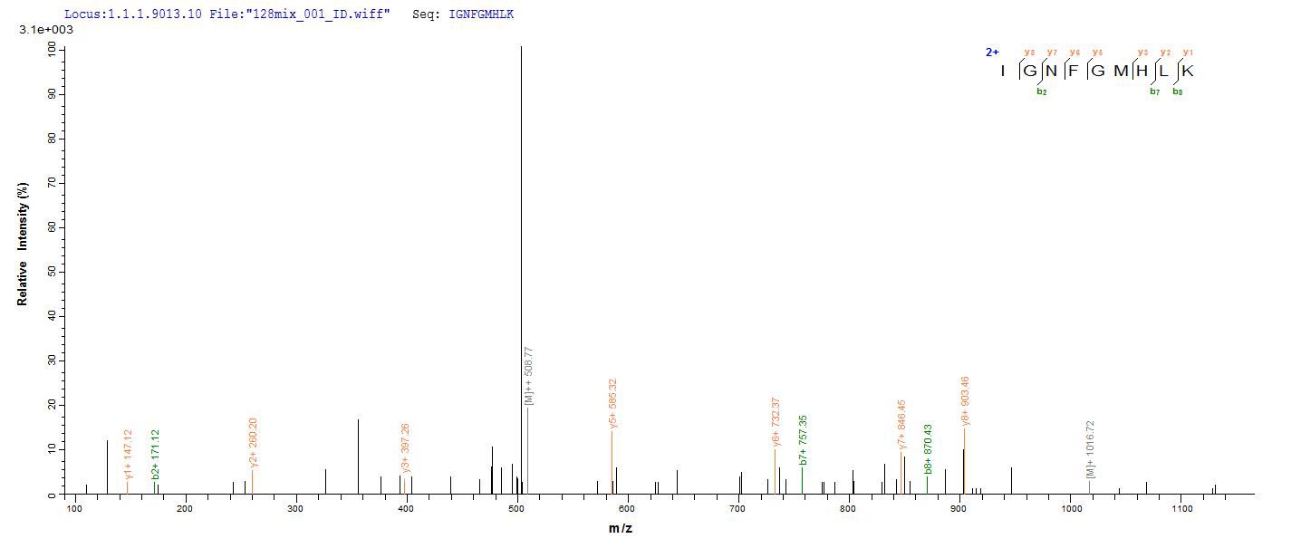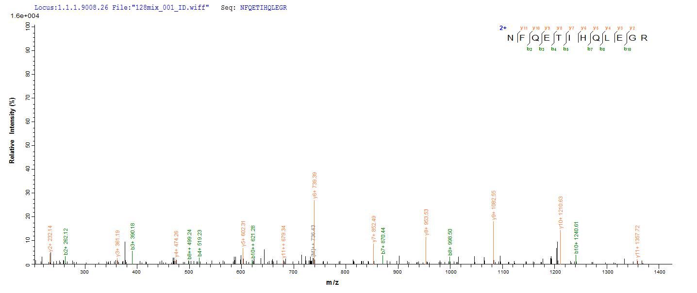 Based on the SEQUEST from database of E.coli host and target protein, the LC-MS/MS Analysis result of CSB-EP024154HU could indicate that this peptide derived from E.coli-expressed Homo sapiens (Human) TRAF6.