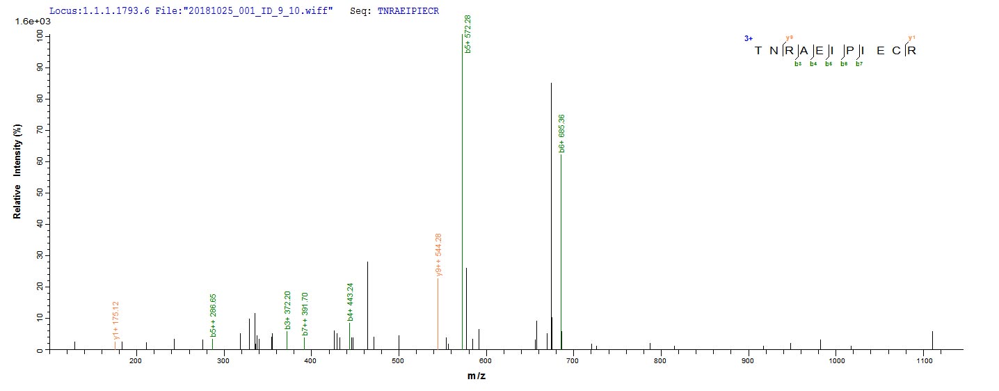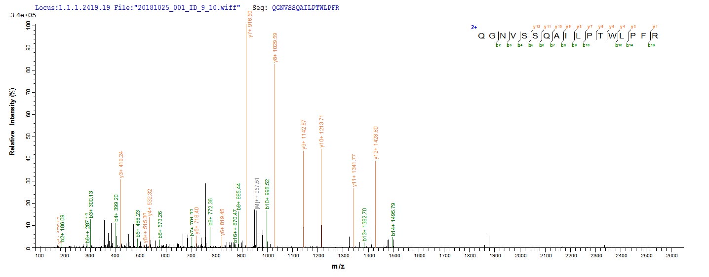 Based on the SEQUEST from database of E.coli host and target protein, the LC-MS/MS Analysis result of CSB-EP027121HU could indicate that this peptide derived from E.coli-expressed Homo sapiens (Human) ZP3.