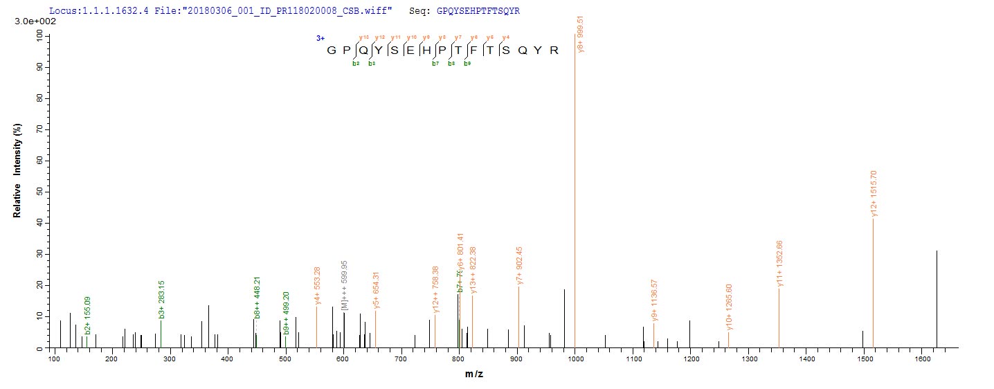 Based on the SEQUEST from database of E.coli host and target protein, the LC-MS/MS Analysis result of CSB-EP361930HWV could indicate that this peptide derived from E.coli-expressed Human cytomegalovirus (strain AD169) (HHV-5) (Human herpesvirus 5) UL83.
